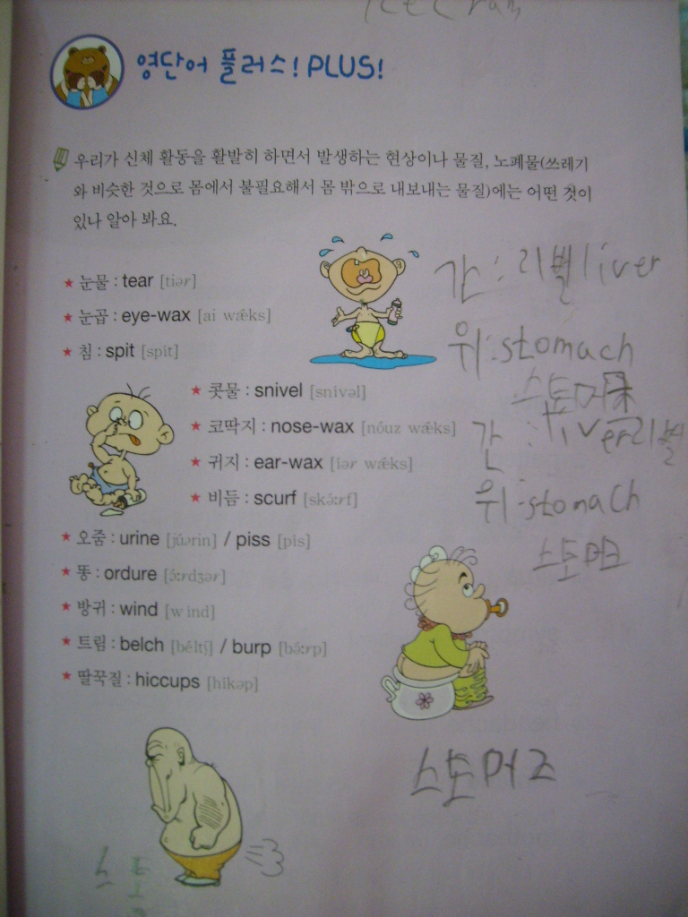 I have three different student dictionaries and all of them of them contain drawings of the human anatomy. They quite interest me as in all three dictionaries, plus a similar poster on the wall of a classroom in my school, the bodies are androgynous. Shortly below the belly button, biology ceases and anything happening in this area does so by some assumed, magical process. In three of the four examples, the poop shoot continues down until it meets the world which is fairly important as the poop shoot is the source of so much Korean humour, but other than this, all other tubing and their associated mechanics, urinary and reproductive, have been censored.