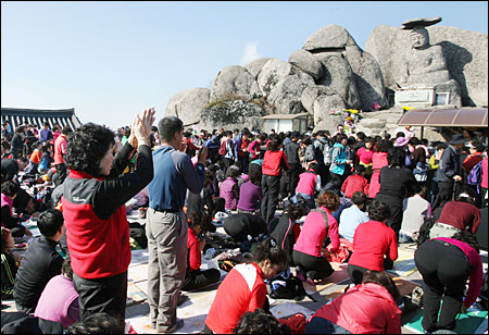 Beyond official and bureaucratic procedures adopted to ensure both fairness and a conducive examination atmosphere, a host of other practices have developed aimed to improve the chances of success. Eating anything sticky on or before ‘D Day’ is believed to enhance ones luck. Sticky things cling to the wall and do not fall and so by chewing on toffee (엿), or sticky rice cake (찰떡), it is hoped you grades will hold fast and not slip into the gutter. Conversely, eating anything slimy, such as seaweed soup (미역 국) might incur bad luck and see your chances for the university of your choice slipping away. At the same time, one must avoided uttering any word expressing failure, falling, dropping, sinking, sliding or slipping. The reason obvious; if it’s muttered, it might happen. Parents and relatives will travel to mountain temples to say prayers and leave slips of paper on which are written the names of loved candidates, or they will attend special services in churches where small Bibles can be purchased in which you stick a photo of your son or daughter, all in the hope of currying divine favour. I doubt many believe success or failure is determined by the consistency of ones food, use of language or even prayer but anything which can be used to bolster the spirit is a valid psychological weapon in the quest for exam success and highlights the desperate measure to which the importance of exam success drives individuals.