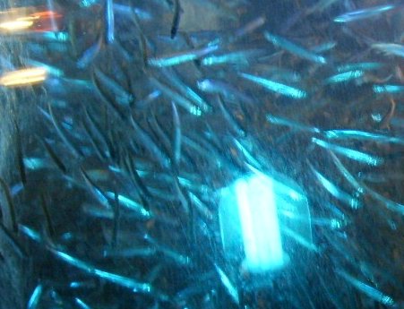 Last night, on my way home from school, I noticed the smelt van pulled up on the side of the busy cross road which I use several times a day. Every few months this small van appears and it’s always noticeable, perhaps more so for the waygukin (foreigner) because of its strangeness. Patches of snow and ice, from the recent nuclear winter, lay on the sidewalk and the air had an invigorating nip. From the smelt van interior steam, illuminated by the little bright lights around the van, intermittently billow out into the evening air, wafted away by puffs of chilly wind.   On the back of the van sits an enormous aquarium on which a couple of small lights focus and the  light, refracted from the  furthest glass panel,  makes it appear as if you are looking horizontally into a vast expanse of blue water in which a  thousand  small silver fish frantically swim like  slivers of glass.