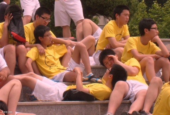 first year high school students with the hanja character for “innocence’ (순소한) emblazoned on the t-shirts