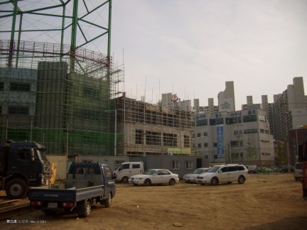 a busy building program in Dasa, Daegu. Construction can be seen from early morning until it begins to get dark – six days a week!
