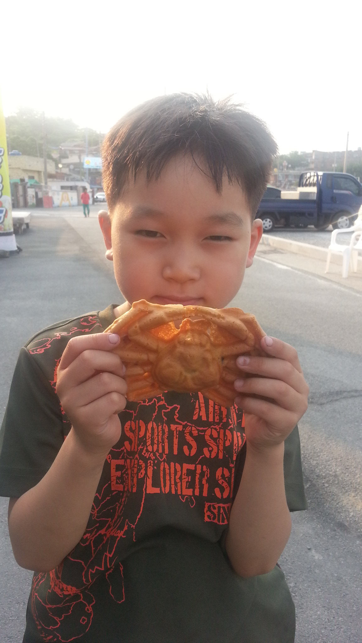 Red bean paste filled bungoppang. In this case, and uniquely, its crab rather than the traditional fish shape. Far less calories than a mega-Snickers and with some roughage.