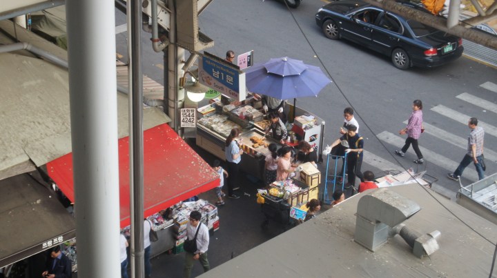 I’m waiting for some form of verbal challenge and am about to add how Korean streets are dirty but the boy totally disarms me. ‘I’m sorry,’ he says in English as he waves with one of those camp Korean waves that emanate solely from the wrist. As one of the boys turns back to reclaim their rubbish, I turn a corner. With some cars between us, the boys are unsure where I’ve gone. I watch carefully because I’m expecting them to simply chuck the rubbish back on the pavement once they think I’ve disappeared – that’s been my experience of similar confrontations in the UK. However, dutifully, the boy finds a rubbish bag on the side of the pavement and discards it therein.