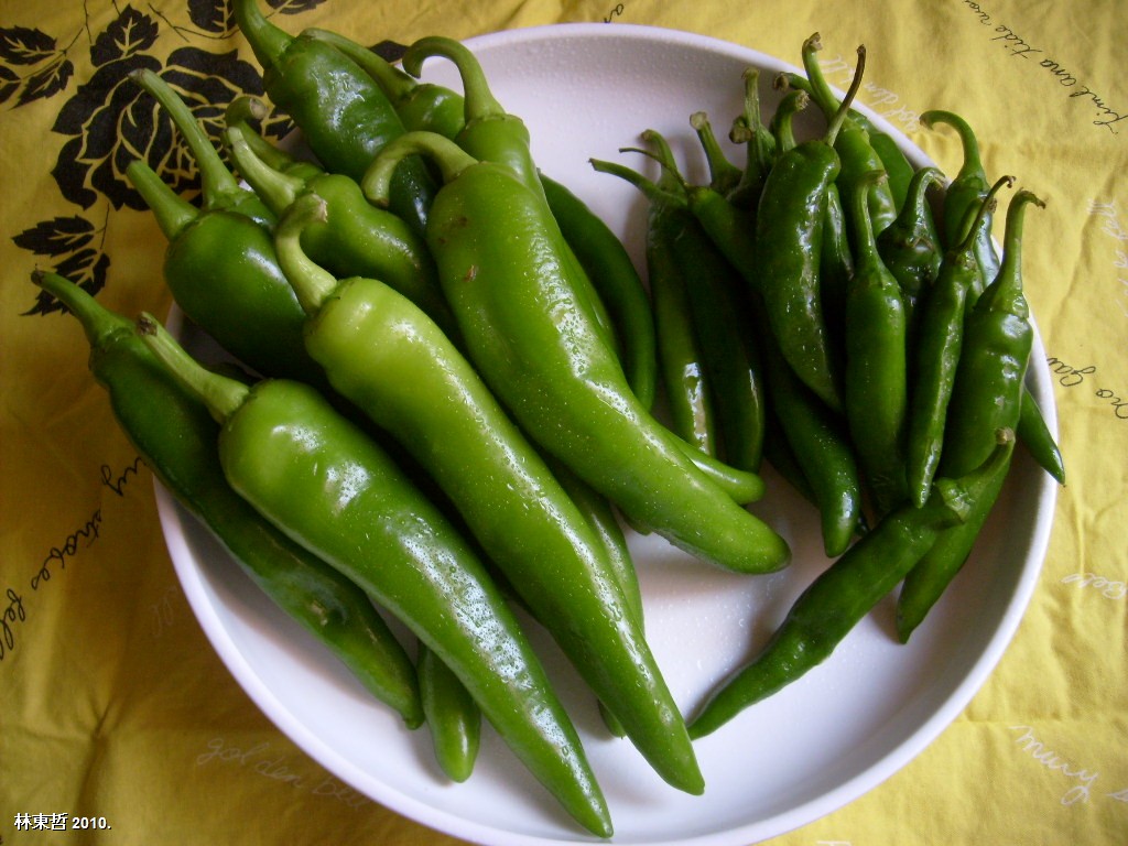Okay, this is a really tasty chili with absolutely minimal heat probably just a few steps up from the green paprika (green pepper). It is usually slightly lighter in colour than hotter chillies, long and fat and fairly juicy. Rather boring on its own, but instantly transformed if dipped in ssam-jang (쌈장).