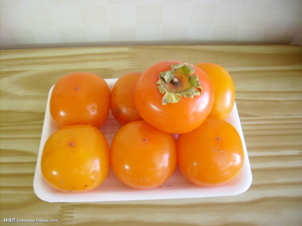 I’ve written several times about the persimmon which in Korea, like the octopus, has three different names depending characteristics. For some reason ‘3’ always seems to be associated with food though I’m sure it’s coincidence. You’re supposed to wash cabbages three times after salting and I was taught to rinse rice three times before cooking. I took this photo a month ago as the first flush of soft persimmon, known as ‘yeson-shi’, appeared in the market. I love this type of persimmon and several years ago built a stock-pile in my freezer which lasted into mid spring. Actually, I ended up so tired of them I hardly bought any the following year. Now I want to eat them but unfortunately am restricted by my diet. However, I couldn’t resist buying some just to photograph. The first flush of yeon-shi are particularity delicate and beautiful but their colour quickly changes as autumn progresses.
