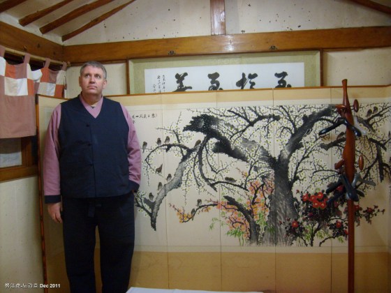 Last Friday I travelled to Bu-gok (부곡), about 45 minutes drive outside Daegu, to practice straw cutting with my komdo teacher. The barn where we cut is on a farm and wandering around I discovered some enormous spider webs belonging to what is probably the most prolific spider in Korea, the Sorcerer or Shaman spider (mu-dang – 무당). In English it has several names including the Golden Banana Spider and Joro Spider. Its Latin name is nephila clavata.