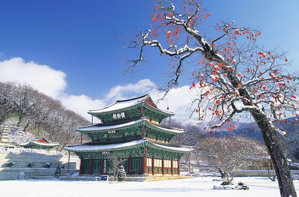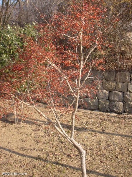 I was recently out of the city, in Jeollanam-do, on a wintry coastline that was especially decorated with both persimmon and ginkgo trees. I’ve written numerous posts focusing on one aspect or another of persimmons and have intended over two years to write a post dedicated to the ginkgo. Seeing the ginkgo (은행) and persimmon (감) in a winter setting, when void of leaves yet still bearing their autumn fruit, evoked images of the Korean and possibly Japanese and Chinese, traditional paintings I’d seen over the years but never really appreciated. A persimmon in the depth of winter which still carries its bright orange flames of fruit, especially against a cold and bleak backdrop, is a beautiful sight. The ginkgo, though perhaps not as noticeable, nonetheless has the capacity to intrigue us with it busy array of nuts. The Ginkgo is an amazing tree which can grow to a considerable size and in autumn, with its bright yellow foliage, it is a wonderful sight. Then there is the schizandra tree (오미자), the bright red berries of which are current feature in markets.