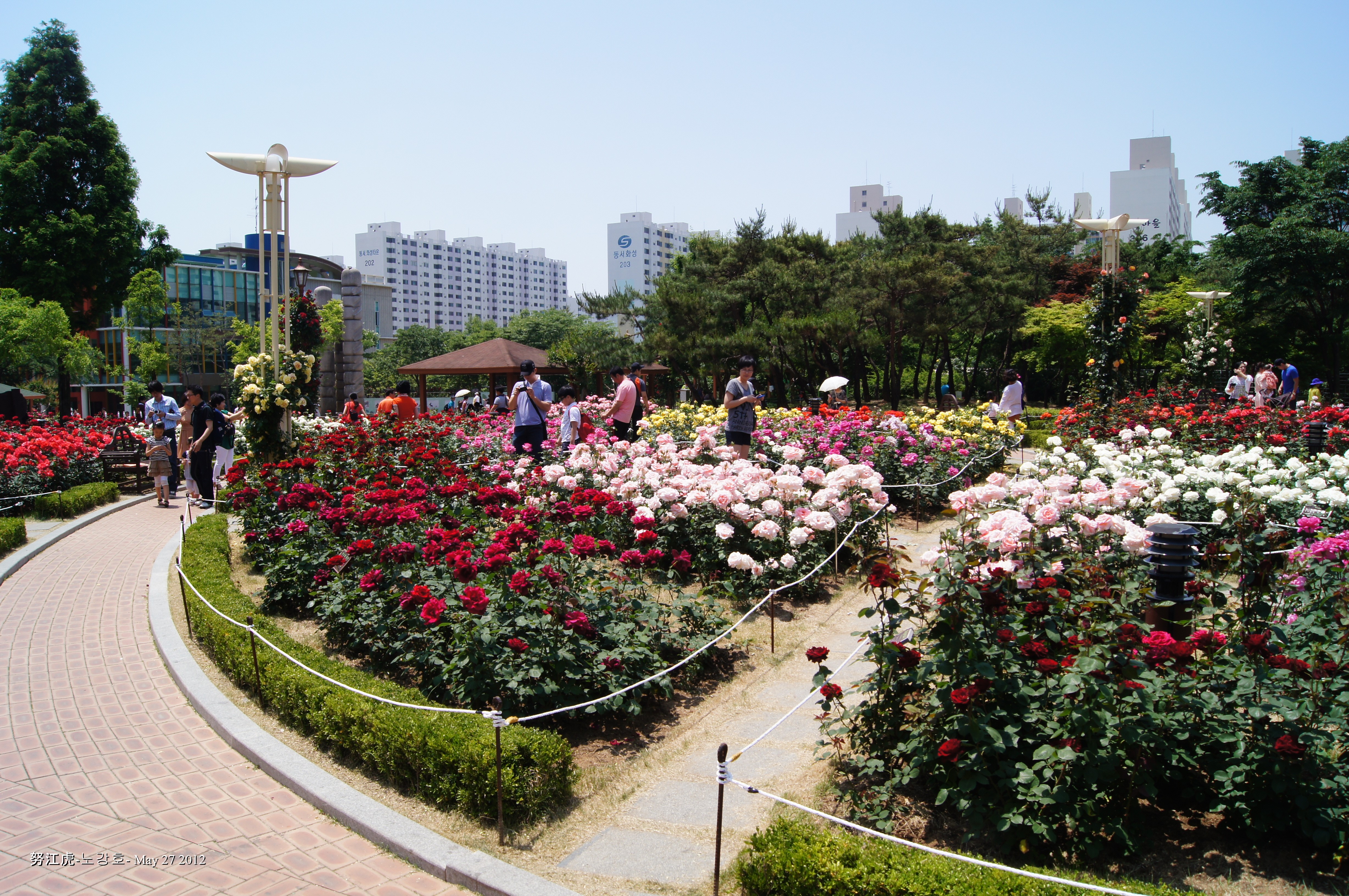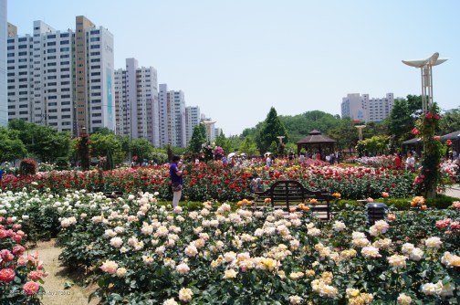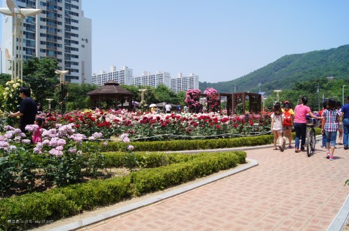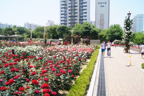 Rose Parks are a regular feature in Korean cities and Daegu has several one of which is close to my one-room. From mid-spring right through until the brink of winter, the park is a mass of incredible colours and heady with the scent of roses and fresh wood-chippings.