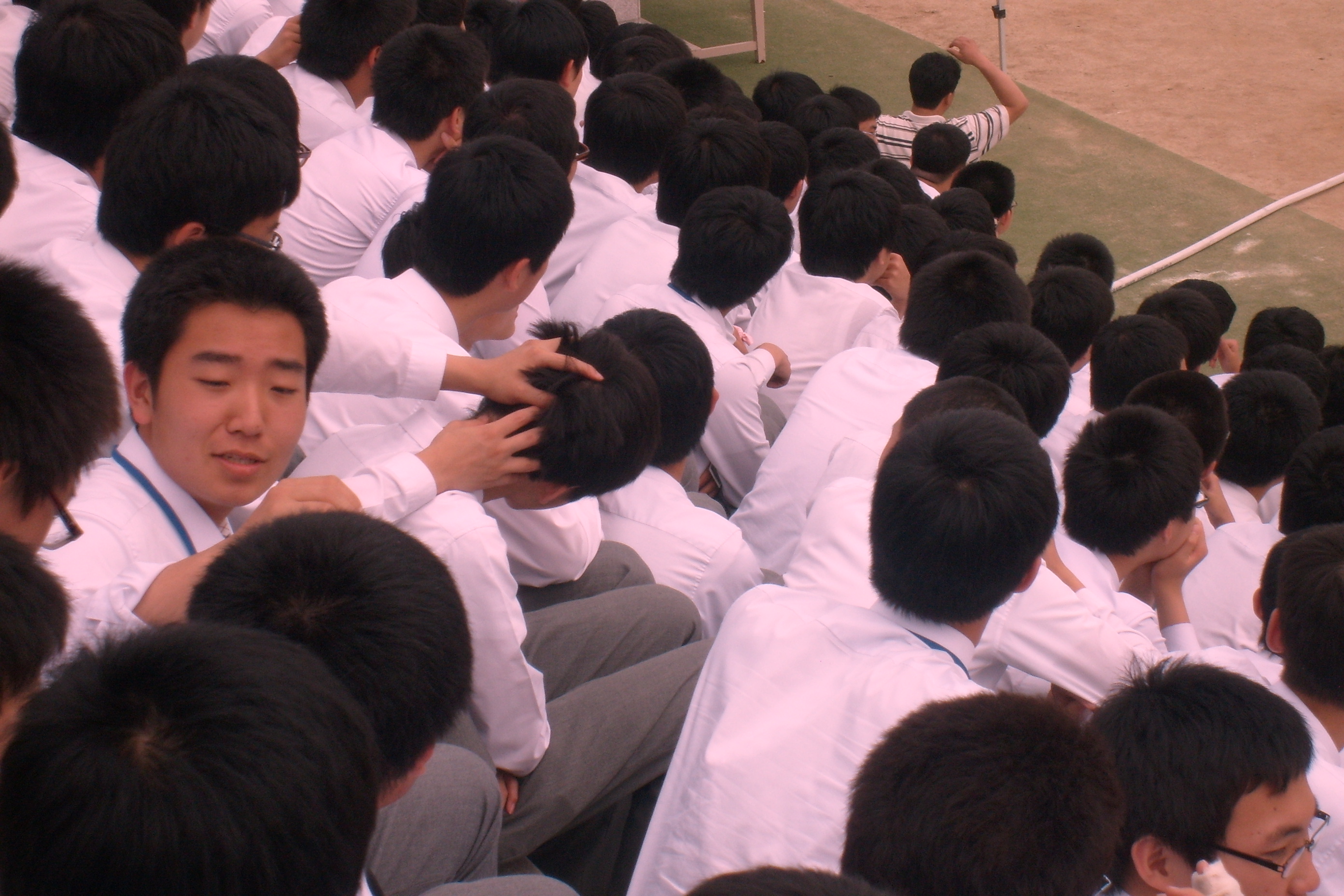 (a new English teacher in Japan working in a junior high school) ”Man, I went into one of my classes today, and this one boy was sitting on the lap of another one right there and he had his one hand in his half-buttoned down shirt feeling up the other boys chest, and with the other hand he was playing with the other boys hair. Both of them seemed fine with it, and nobody else seemed to care at all. And I knew both of the kids have girlfriends because I talk to them after class. It was so weird…”