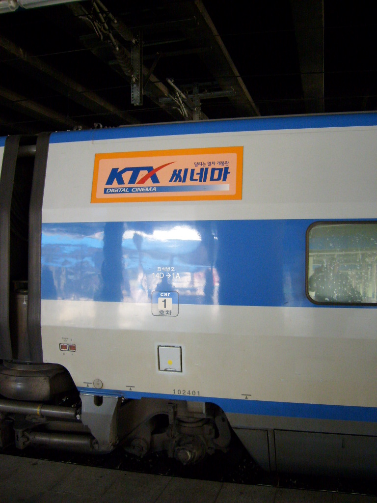 If I hadn’t been so tired after almost 32 hours of traveling, I’d have taken some photos. I am totally in love with the Korean KTX train service and traveling first class is well worth the extra money. Though the British 125, high-speed train towing 7-8 carriages at a maximum speed of 125 mile per hour, has been the backbone of British intercity travel for thirty years, it is far from the golden standard of travel even if you sit in first class. And it might not be upgraded within the next 10 years! The KTX service is certainly a limited service, operating to only a few destinations but despite being less than 10 years old, services are being extended and new engines and rolling stock introduced. Towing 18 carriages, at a top speed of just over 200 mph, the compartments are fairly quiet and you might be fooled into thinking the train isn’t traveling so fast. However, having kept an eye on the carriage plasma screens, where the speed is constantly visible, we traveled at about 290 kph for most of the journey (that’s c. 180 mph). The KTX, modeled on the French TGV system, is a technological masterpiece but it isn’t just technology and speed that make a service ‘gold standard.’