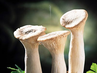 Koreans, like many other European countries, are much more adventurous in their culinary and medicinal use of fungi and a wide range of exotic mushrooms are available. The king oyster mushroom (새송이 버섯 – pleurotus eryngii) is common in markets and supermarkets and is also known in Britain as the king trumpet mushroom or French horn mushroom. In Korea it is a common ingredient in stews and a favourite skewered between meat and onion. Though not particularly flavoursome, when cooked it has a meaty, abalone-like texture. Though difficult to find, as they often grow under forest ‘debris,’ they are easy to cultivate.