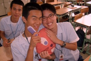 The main protagonist of the skinship is Mark, a boy of about 15 (English reckoning). While the other boys sit in the same seats, all the front row, Mark seems to change seats each lesson and will paw and fiddle a different lad correspondingly. Stroking hair, massaging shoulders, holding hands are all common but on two occasions he has also kissed other boys on the cheek, albeit as a joke. His friends tell me he claims to be ‘in love’ with a different boy each day and accuse him, in the nicest and gayest way possible, that he’s ‘gay’ – on two occasions this has been the point he has kissed the current object of his interest.