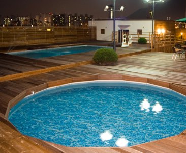 (First visited 7th of June 2011. Last visited 25th of July 2011). Despite the fact that you are likely to see more right angles in Na-seong Hawaii than in most other bathhouses, the atmosphere is calm and relaxing with a pervading sense of balance and lightness. Entering the atrium from the changing room, four pools occupy the centre contained within one large rectangle. The largest is the warm pool behind which lays a small bench massage pool and two smaller hot pools. At the far end of the pools, and contained within the rectangle are six ondol heated plinths made of jade. The large rectangle encompassing these features is mirrored by glass vaulted roof around the edges of which are small trees. The vaulted roof provides natural light and has the effect of both ‘opening’ the atrium and giving it a sense of lightness. Sitting in the pools or lying on the jade plinths and being able to look up at the sky is quite relaxing but this feature is only present in the male complex.