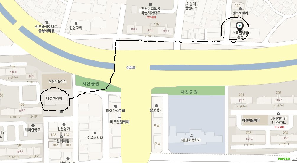 Getting there – Na Seong Hawaii is five minutes walk from Saeng Hwal On-ch’eon. (Wikimapia link) It is close to Jinch’eon subway. From Song-seo, Lotte Cinema, it is about 5500 Won by taxi.