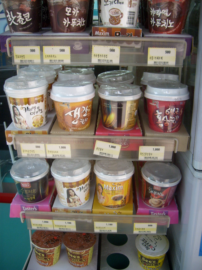 If you want a partially decent coffee in Korea you have to buy whole beans, avoiding ones drenched in essences, and grind them yourself. Even then there is something missing but it’s minimal enough to fade within a few months taking you one step closer to enjoying chemo-concoctions.