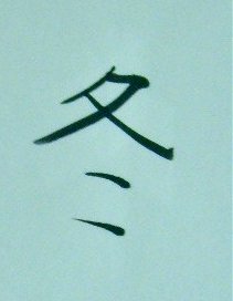 This character, meaning ‘winter,’ comprises two parts; the lower two strokes are what is known as the ‘radical’ and in this case signify ‘ice.’ These two strokes never appear independently as they are a compression of the original. ‘Ice’ in fact, contains 5 strokes in its full form. Radicals convey an important part of a character’s meanings and characters can be grouped according to them.