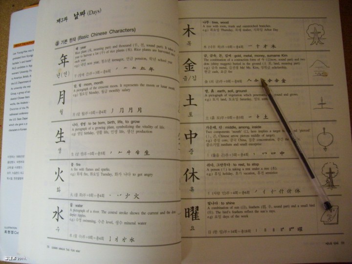 I’ve known a number of westerners who arrived in Korea in the late 80’s and whose Korean, many years later, is still rudimentary. It’s easy to criticise such apparent laziness until you remember there was no internet to support your learning or provide lessons, few decent language courses or dictionaries and unless you were in Seoul or one of the big cities, few language classes. After a few years enduring such conditions it becomes a case of, ‘you can’t teach an old dog new tricks.’ As for hanja, I’ve met westerners proficient in Korean who didn’t even know what hanja was. While access to information on the internet existed, certainly around 2000, there was very little compiled on Korea or Korean culture and the ability to write in hanja characters was difficult, costly and dependent on Korean based language packages. Today, though limited for the non Korean speaker, information on hanja is available and if you aren’t interested in trying to learning it, you can very easily research what it comprises.