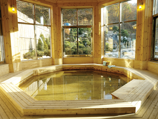 The Hwang-So Sauna in Song-So, Daegu, has a hinoki tang (히노끼탕).