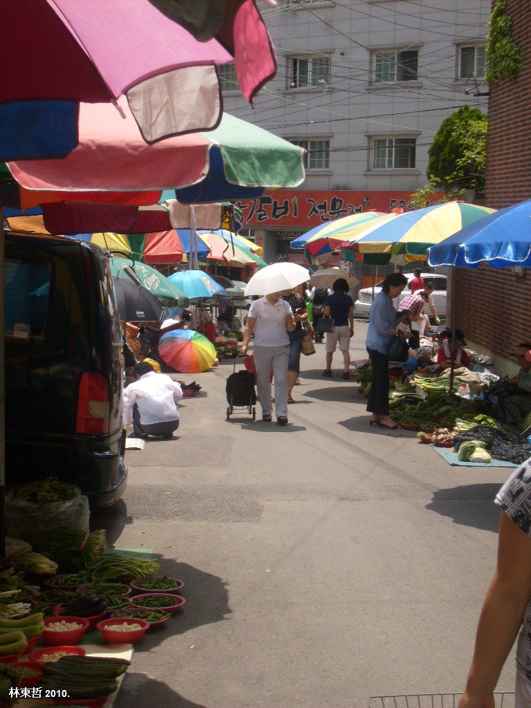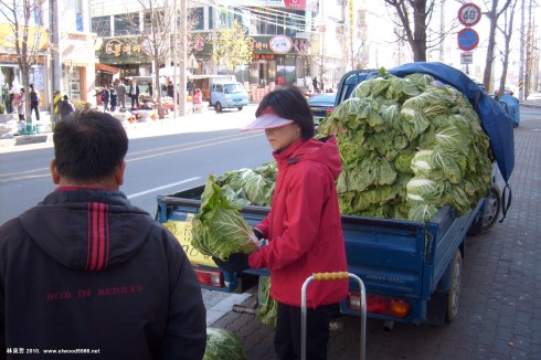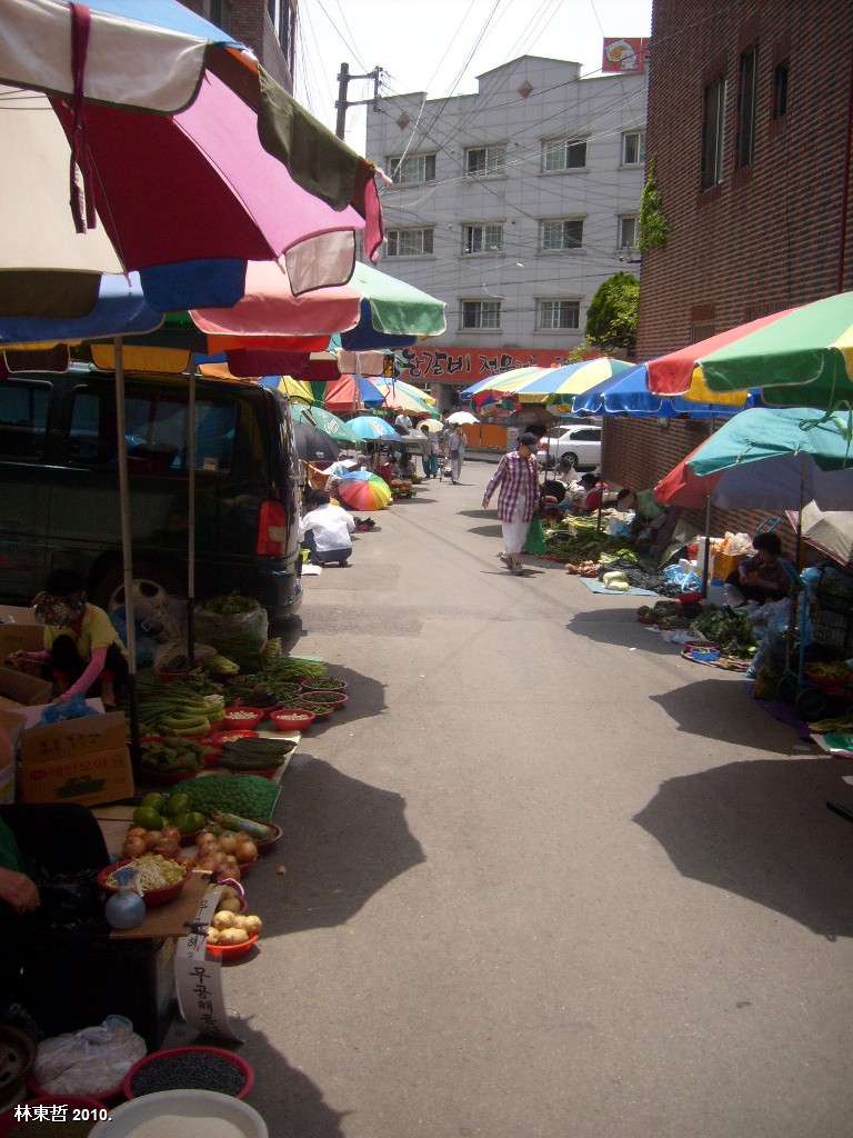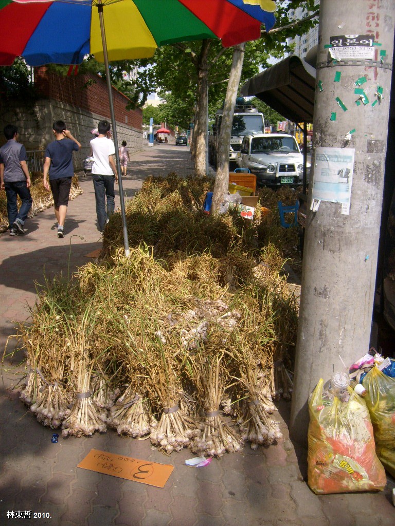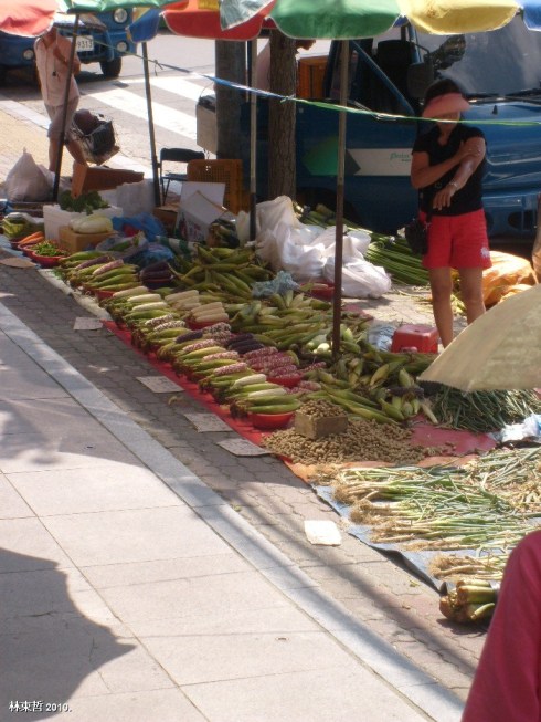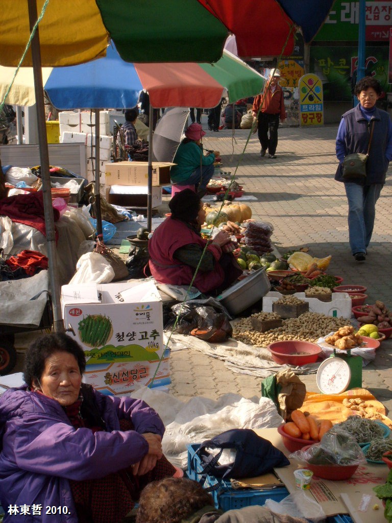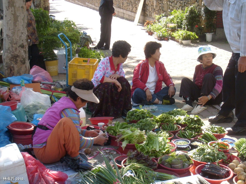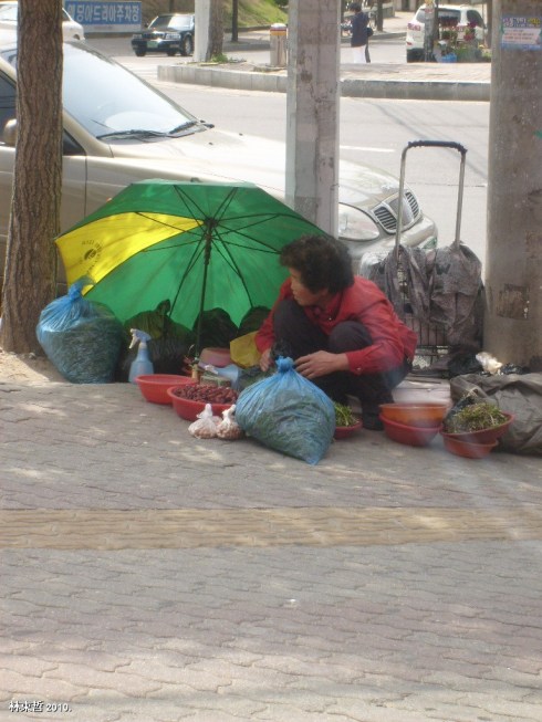One of the most common sights in Korea are the street vendors who peddle everything from snacks and vegetables, to meat, fish and bicycle repairs. There are many different kids of street vendors from the ones who travel around an area with a street market to people who pull up on the side of the road in small trucks from which goods are sold to the little old ladies who sit around towns with a selection of vegetables strewn on a sheet on the ground.
