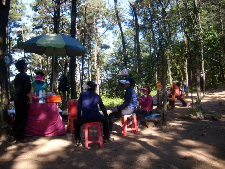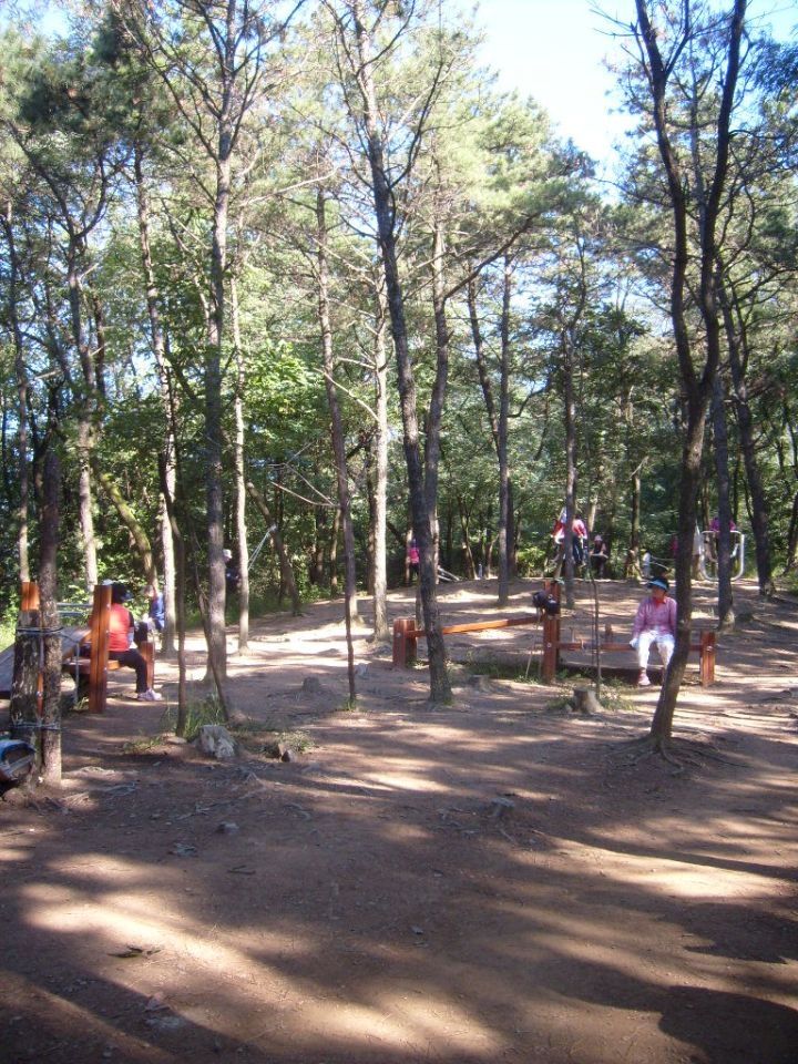 After reaching the Dragon’s Head (용두), the crown of the Warayong Mountain, I walked a little further to where the refreshment stall is and there find twenty people, again mostly middle aged and over, working out on the exercise machines as well as a number of people waiting for the vendor to start serving.