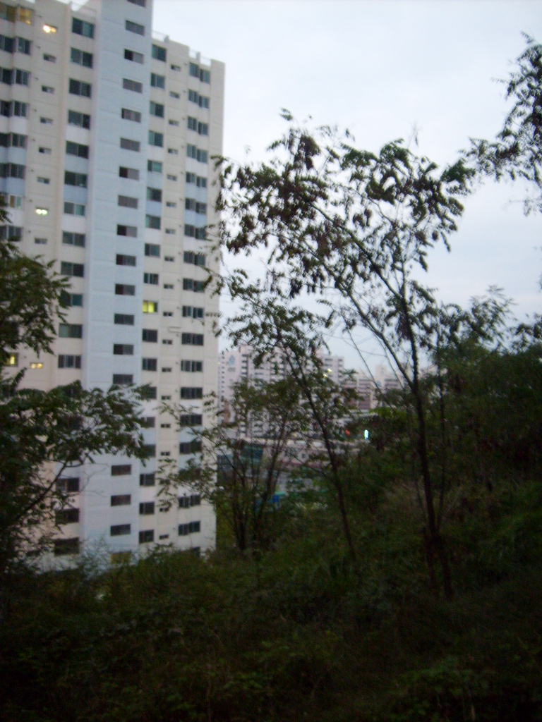 On Saturday morning I took a taxi over to Pauline’s house to see if she wanted to do anything this evening. I remembered how lonely and lost I felt on my first weekend. Pauline lives not too far from Yon San Dong, on the edge of town and with a good view of the mountains. It was refreshing to get away from the high-rises of Song So (성서) and to see some new views. Pauline was busy cleaning her floor and she wasn’t very impressed with the condition of her flat – basically a porta-cabin sandwiched between some houses. She has no iron, TV, or video. In addition no one from the school had visited her to see if she was okay or needed anything. Mr Jo really has no idea how to treat people, especially westerners and it is quite clear South Koreans need a revolution to reorganise the slavish way people are expected to work.